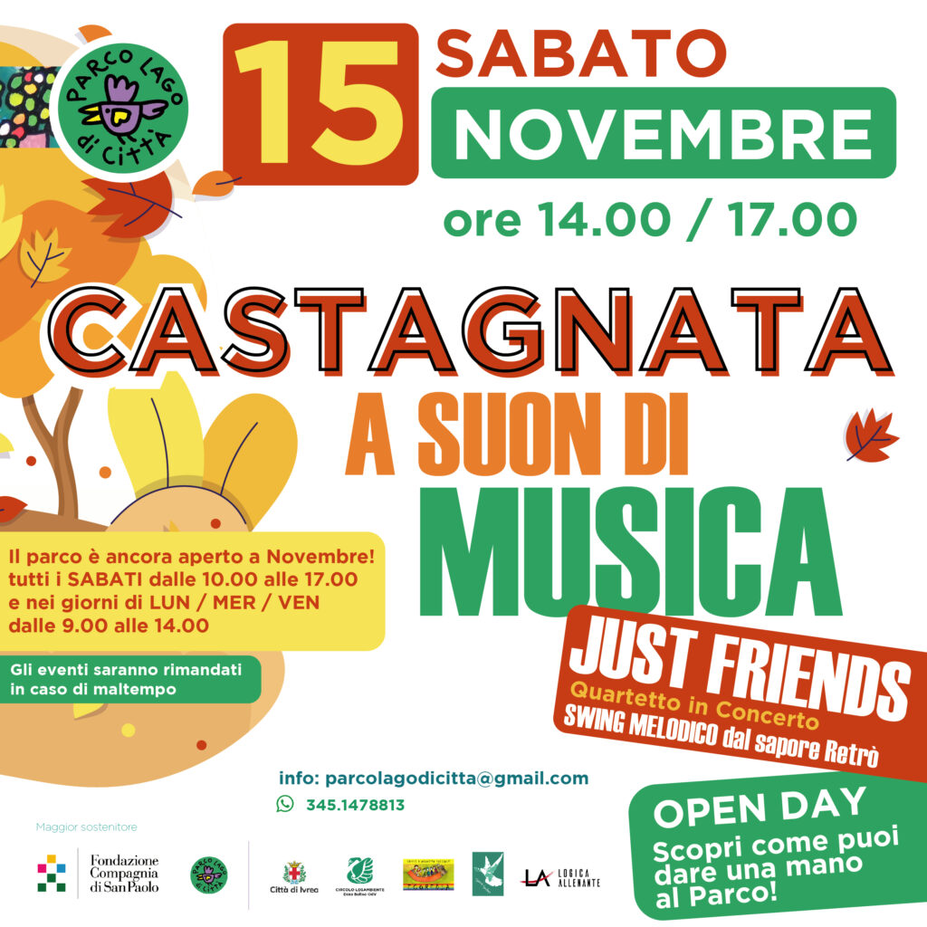 Un’occasione per scoprire come puoi dare una mano per rendere ancora più vivo e bello il Parco Lago di Città ! Ci saranno castagne per tutti accompagnate dalla bella musica di JUST FRIENDS, quartetto in concerto con swing melodico dal sapore Retrò.