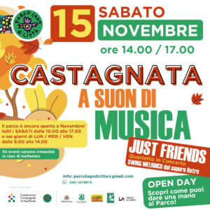 14.00 / 17.00 Castagnata e musica dal vivo. Un’occasione per scoprire come puoi dare una mano per rendere ancora più vivo e bello il Parco Lago