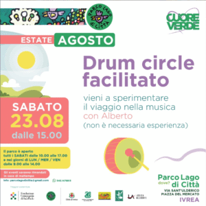 Sabato 23 agosto alle 15 ci divertiamo con la musica e i tamburi di Alberto. Vieni a sperimentare il viaggio nella musica, non è necessaria
